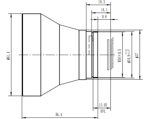 | Materials of Lens Housing | Anodized aluminium | Max. Dimensions (Diameter x Length) | Φ61.4x56.4 |