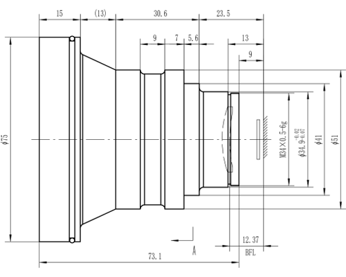 | Materials of Lens Housing | Anodized aluminium | Max. Dimensions (Diameter x Length) | Φ75x73.1 |