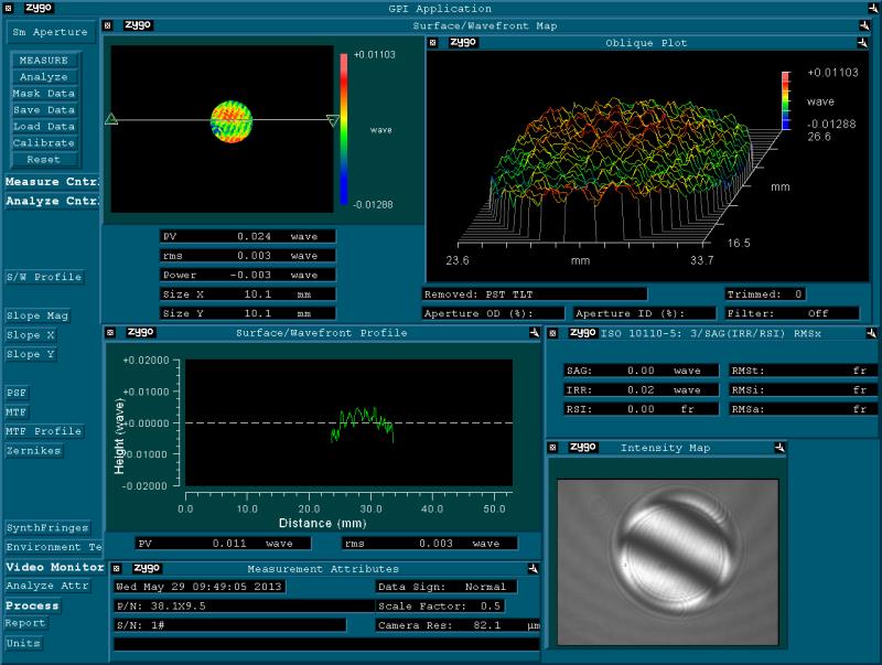 Для измерения окончательной плоскостности полированных поверхностей используется модуль Zygo Lambda 2000 серии GPIXP-D6”.