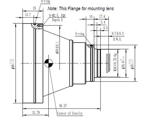 | Materials of Lens Housing | Anodized aluminium | Max. Dimensions (Diameter x Length) | Φ92x95.37 |