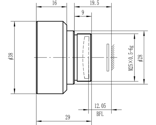 | Materials of Lens Housing | Anodized aluminium | Max. Dimensions (Diameter x Length) | Φ 38x29 |
